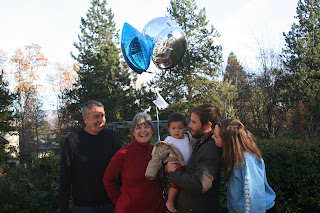 Yesterday was the first anniversary of the passing of Kathy Pearson, Amy's dearly beloved mother. So at 3:07 pm we released balloons with notes attached. Lisa, May, Ron, Rick, Nico and I did this in our backyard. It was a beautiful afternoon and it seemed so right to send our thoughts heavenward.